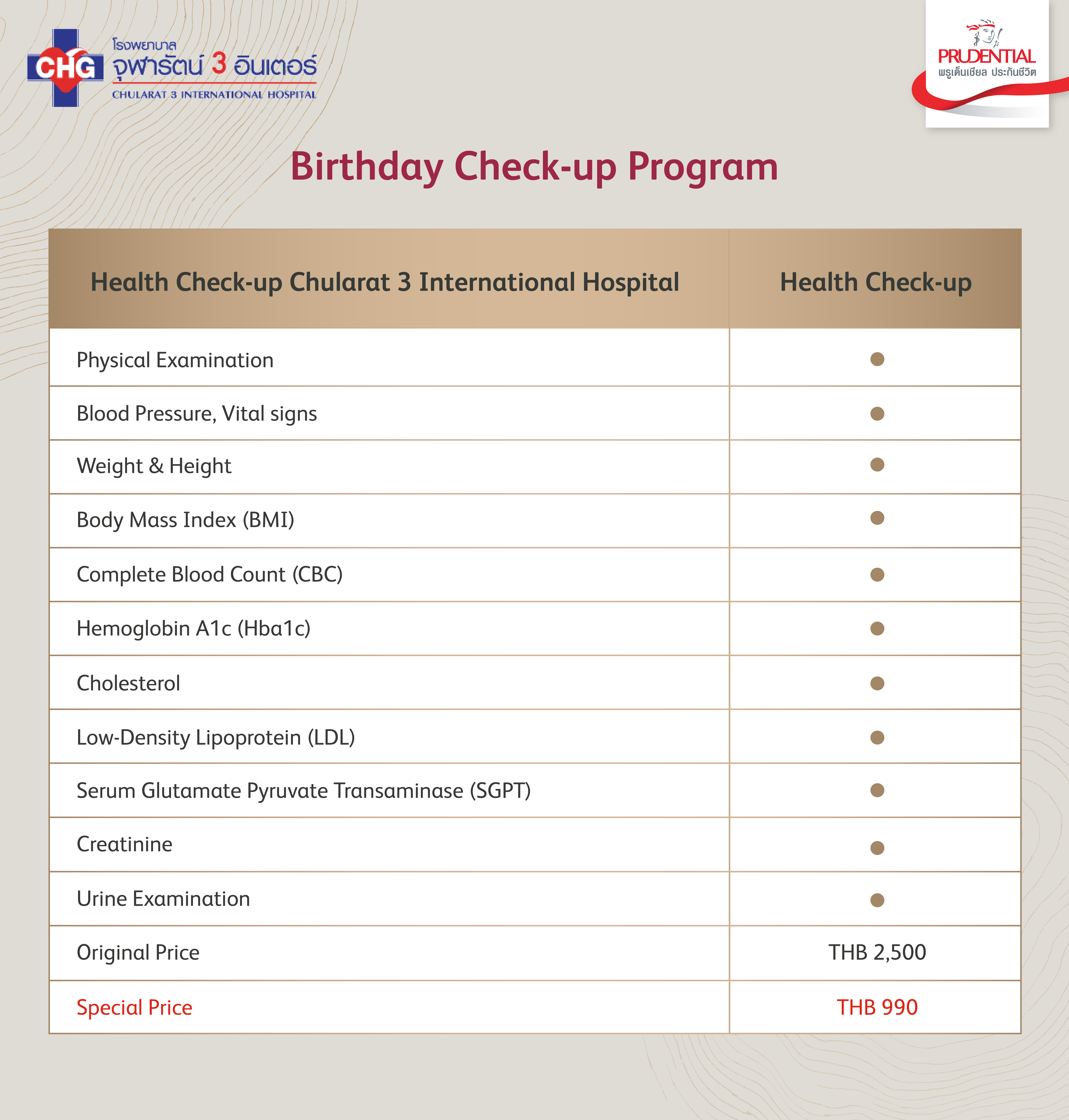 1. This special privilege can only be used at Phyathai Phaholyothin Hospital. Please present your screen to verify eligibility before receiving the service every time.