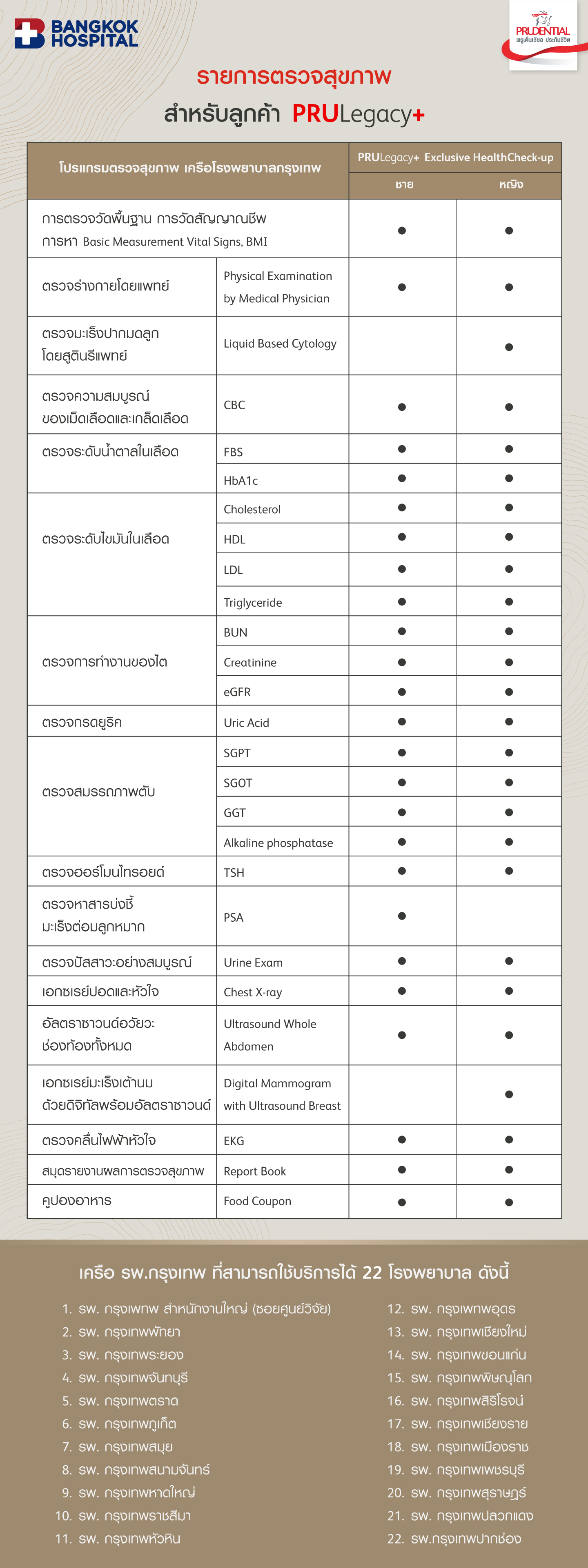 รับฟรี แพ็กเกจ PRULegacy+ Exclusive Health Check-up ที่โรงพยาบาลกรุงเทพ 22 สาขาทั่วประเทศ