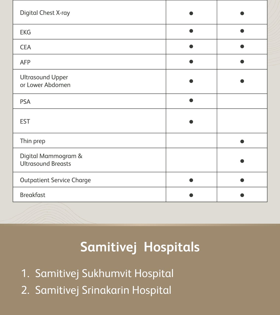 - Samitivej Hospital (Srinakarin): Contact the Wellness Center, Building 1, 2nd Floor.