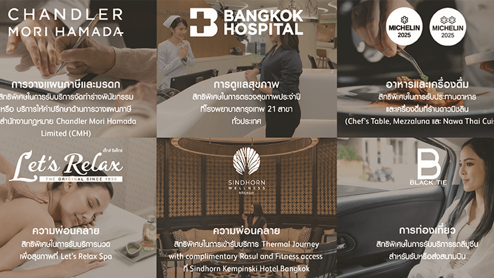 นอกจากนี้ พรูเด็นเชียลฯ ยังเพิ่มสิทธิพิเศษแก่ลูกค้า High Net Worth ที่เป็นสมาชิก PRULegacy ซึ่งเป็นสิทธิพิเศษที่ตอบโจทย์ความต้องการด้านไลฟ์สไตล์ ได้แก่ สิทธิพิเศษการใช้บริการเลาจน์ภายในสนามบิน ตั้งแต่วันที่ 1 กันยายน – 31 ธันวาคม 2568 โดยสมาชิก PRULegacy+ พร้อมผู้ติดตามหนึ่งท่าน สามารถเข้า First Class Lounge ที่สนามบินสุวรรณภูมิ สนามบินดอนเมือง และสนามบินนานาชาติ ได้แก่ เชียงใหม่ เชียงราย ภูเก็ต อุดรธานี หาดใหญ่ หรือเข้า Executive Lounge หรือ Finest Business Class Lounge ในจังหวัดอื่นๆ ได้ 2 ครั้ง สำหรับลูกค้า PRULegacy สามารถเข้า Executive Lounge หรือ Finest Business Class Lounge ได้ 1 ครั้ง พร้อมผู้ติดตาม 1 ท่าน และสิทธิพิเศษรับบัตรชมภาพยนตร์ Major Cineplex 2 ที่นั่ง (จำกัด 1 สิทธิ์ / 2 ที่นั่ง) ซึ่งสมาชิก PRULegacy และ PRULegacy+ สามารถแลกรับสิทธิพิเศษได้ที่บริการ PRUServices บนแอปพลิเคชัน LINE : @PrudentialThailand