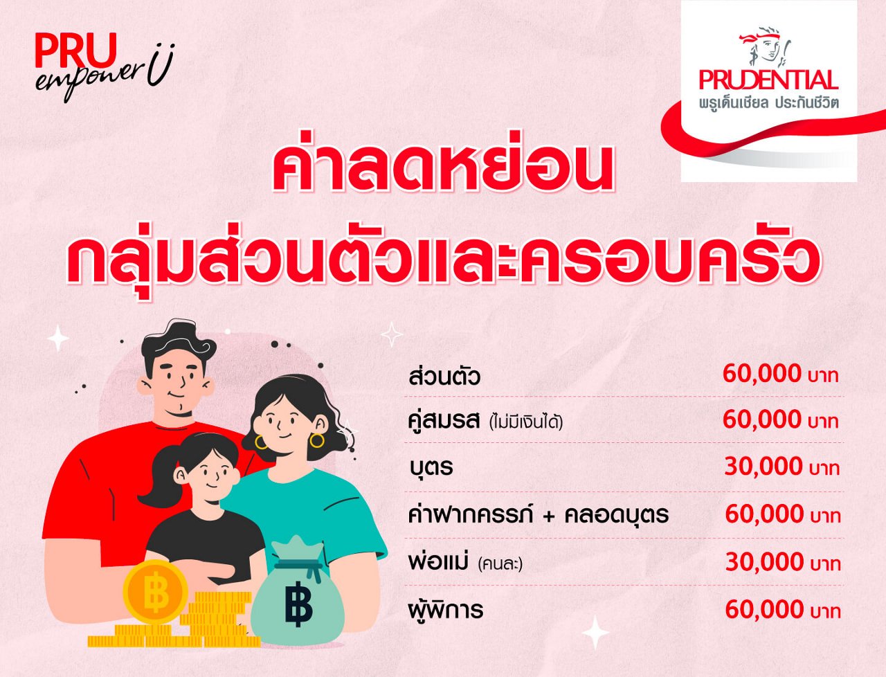 วางแผนลดหย่อนภาษีตั้งแต่วันนี้! ขอแนะนำประกันชีวิตและประกันสุขภาพ จากพรูเด็นเชียล ประกันชีวิต ที่มีให้เลือกหลากหลายแผนตามความต้องการ โดยให้ความคุ้มครองที่คุ้มค่า แต่ราคาค่าเบี้ยไม่แพง อีกทั้งยังสามารถนำมา ได้ตามที่กำหนด สนใจสามารถซื้อได้จากช่องทางตัวแทน และช่องทางออนไลน์