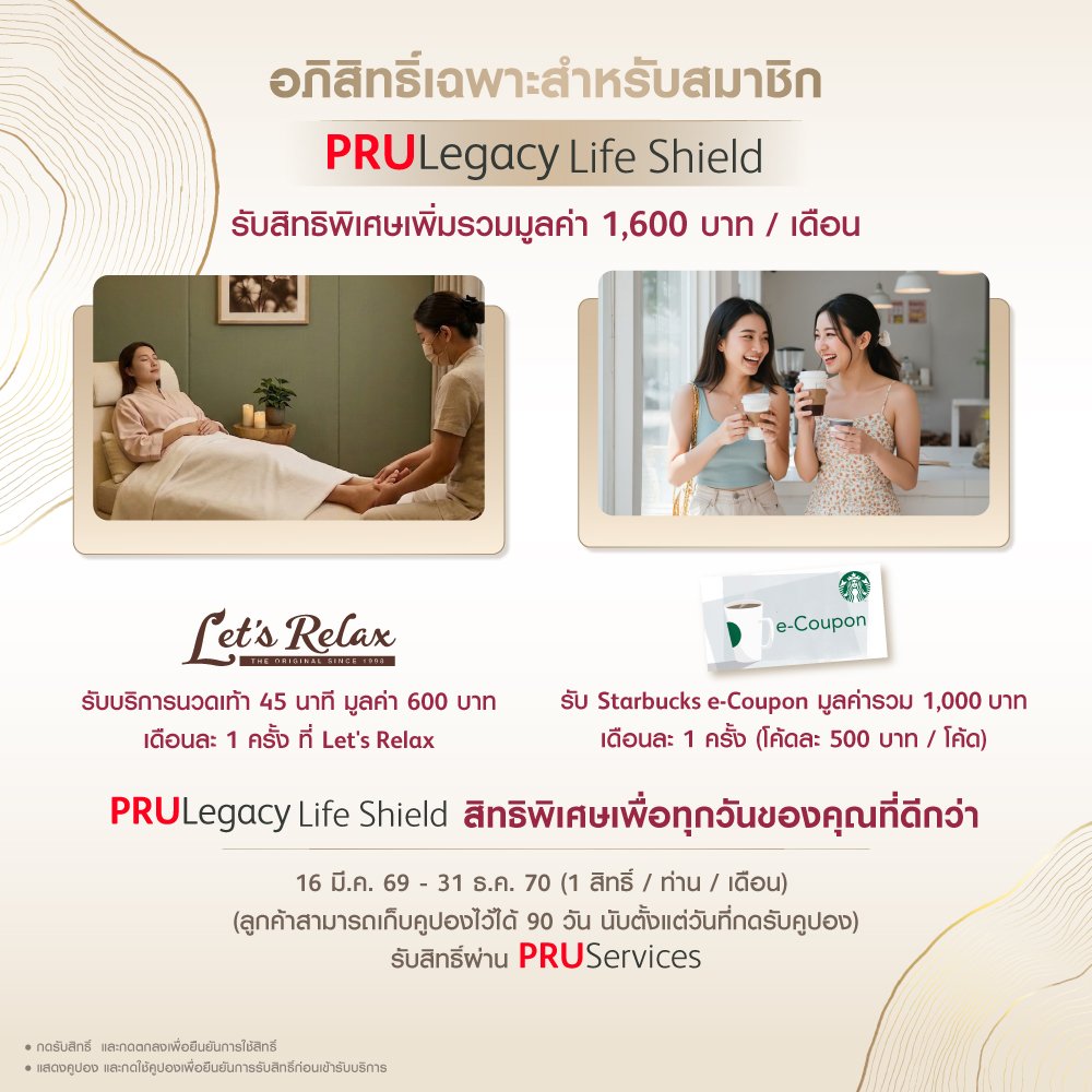 สัมผัสประสบการณ์การดูแลเหนือระดับ ที่คัดสรรมาเป็นพิเศษเพื่อคุณ…ในทุกเดือน กับ PRULegacy Life Shield