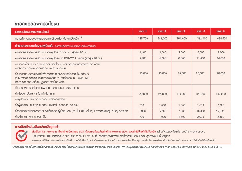 ครอบคลุมทุกความต้องการด้วยแผนความคุ้มครองที่มีให้คุณเลือกถึง 5 แผน