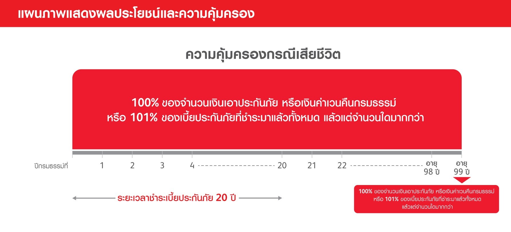 | ระยะเวลาเอาประกันภัย | ถึงอายุครบ 99 ปี |